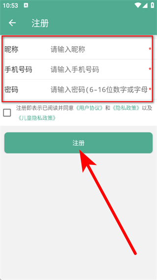 4、在注册页面,输入手机号码,设置密码,勾选协议后,点击注册,完成操作。