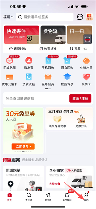 2、在个人页面,点击顺丰用户的区域,进入登录页面。