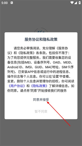 1、在服务协议和隐私政策弹窗页面,点击同意,进入注册/登录页面。