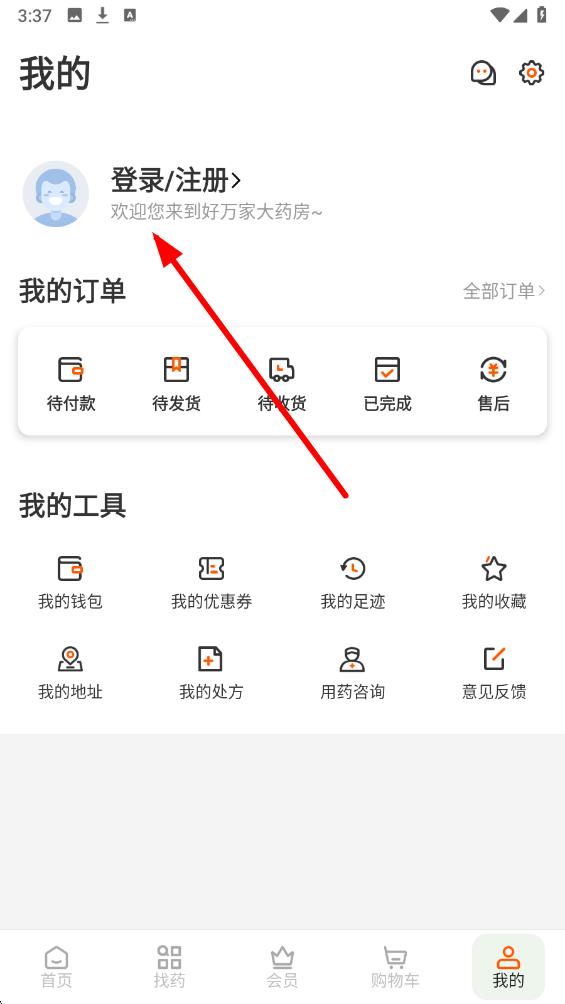 1、打开好万家大药房APP,点击底部导航栏最右侧我的按钮,即可进入个人相关操作页面。