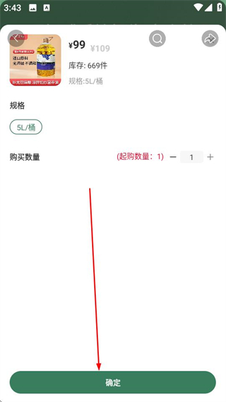 3、在规格选择页面选定规格后,点击底部的确定按钮。