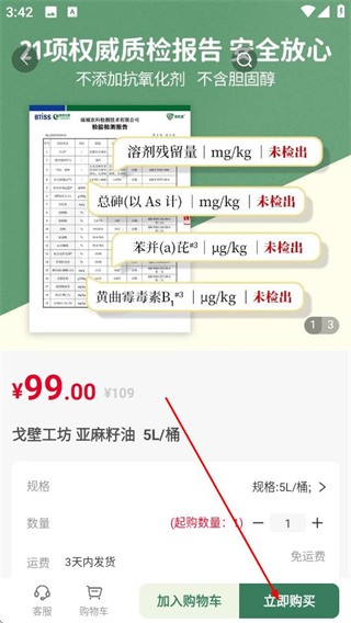2、进入商品详情页后,点击底部的立即购买按钮。