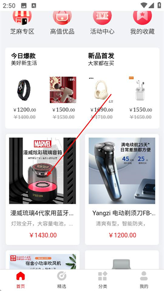 1、在芝麻商城首页选择商品,点击进入该商品的详情页面。