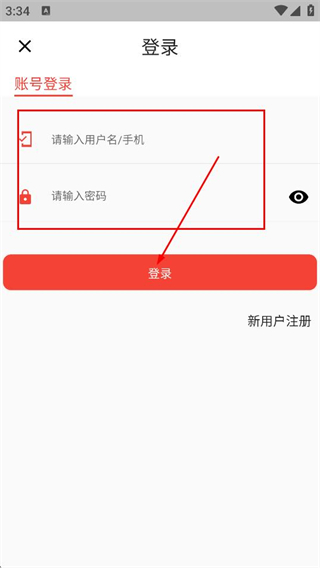 3、在账号登录页面,填写手机与密码,点击登录,完成账号登录。