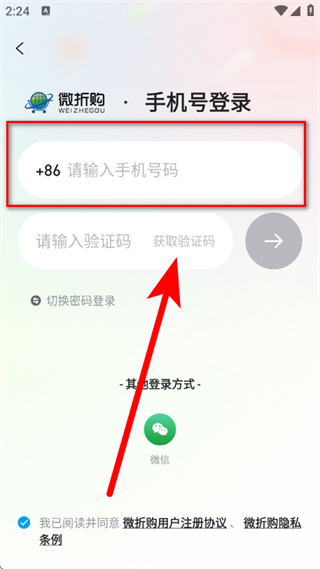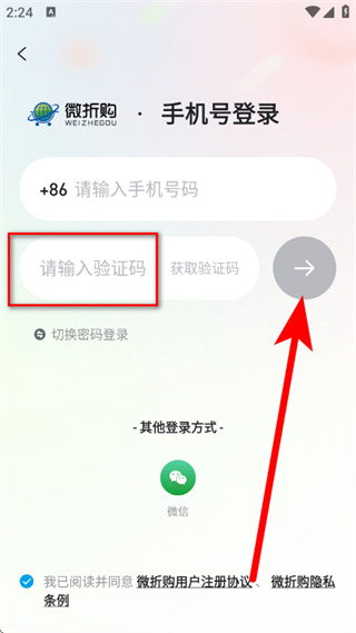 4、在输入框中,输入验证码,勾选协议后,点击箭头,完成登录。