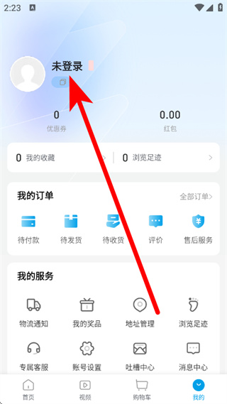 2、在我的页面,点击未登录,进入手机号登录界面。