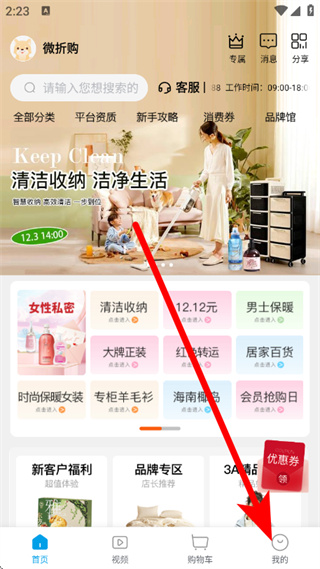 1、打开微折购商城,点击底部的我的,进入我的页面。