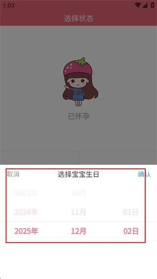 3、在弹出的选择宝宝生日界面,选定对应的年份月份及日期,准备完成信息确认。