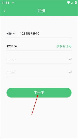 4、确认信息填写完毕后,点击绿色的下一步按钮,推进账号注册的后续流程。
