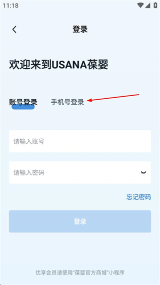 2、在登录页面选择手机号登录方式,切换到对应的手机号登录输入界面。