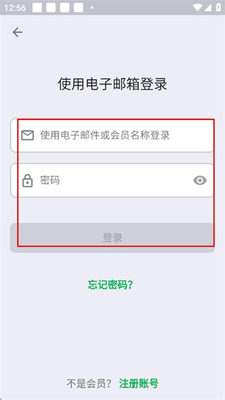 2、在登录页面选择使用电子邮件或会员名称登录,进入邮箱登录页面。