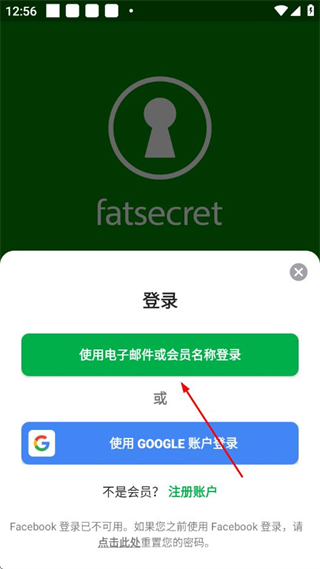1、打开fatsecret APP,在初始页面点击我已有账户选项,进入登录选择页面。