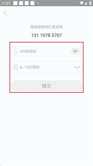 2、在验证页面填写收到的校验码,设置密码后,点击提交完成账号注册。