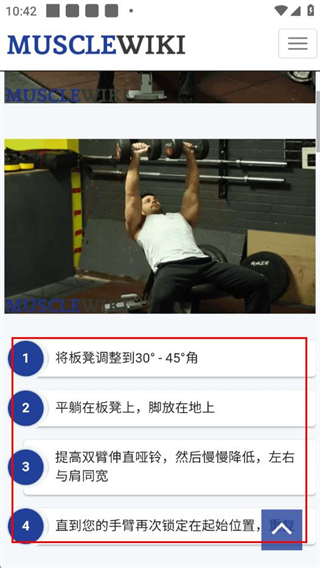 1、打开MuscleWiki应用,在肌肉示意图页面点击目标肌肉区域,进入对应的训练动作页面。