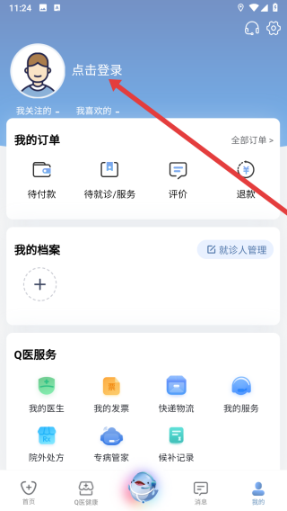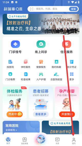 1、打开科瑞泰Q医APP,点击底部“我的”选项,进入个人页面。