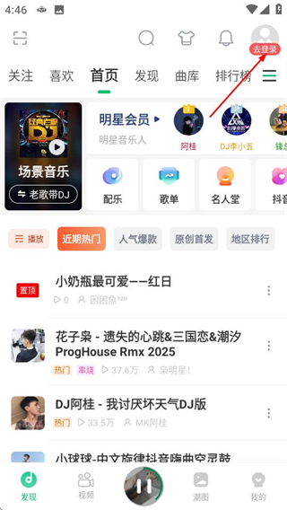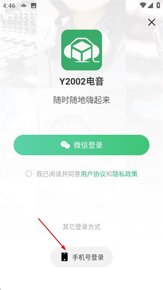 1、在Y2002电音首页,点击右上角的去登录按钮,进入登录选择页面。