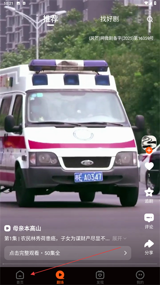 1、打开风芒APP,在首页短剧分类下,点击想要倍速播放的短剧,进入短剧播放页面。