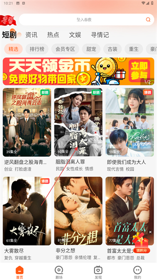 2、进入首页短剧的页面内,点击要播放的短剧内容。