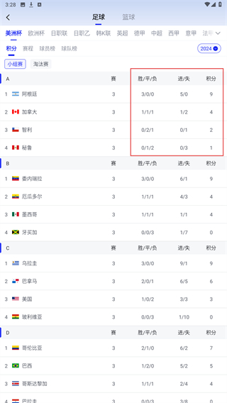 3、进入足球的数据的界面内,可在下方查看各个比赛的数据内容。