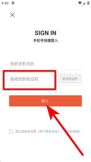 4、在验证码输入框中,输入验证码,勾选协议后,点击登录,完成登录。