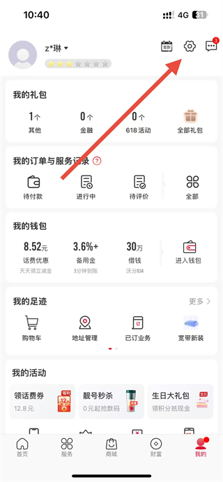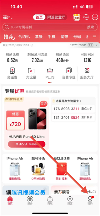 1、在中国联通app首页点击我的选项,进入个人页面。
