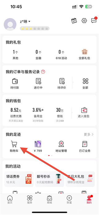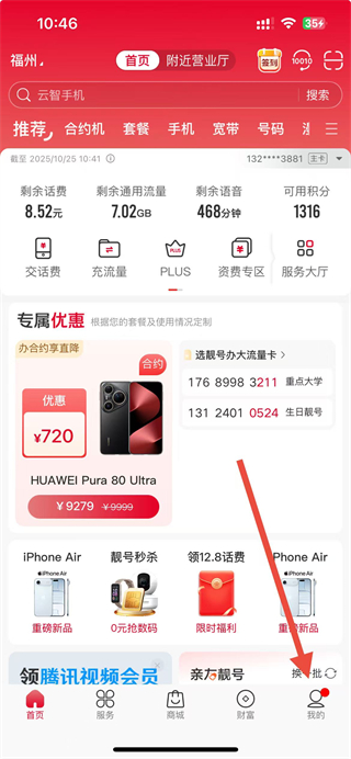 1、在中国联通app首页点击我的选项,进入个人页面。