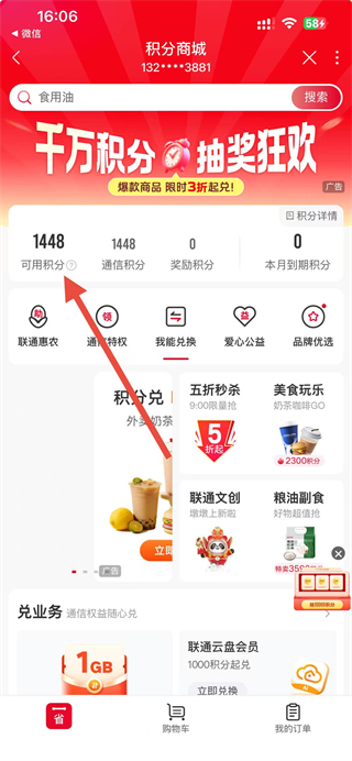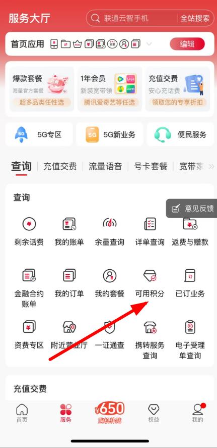 中国联通app怎么查看每月积分