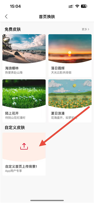 4、或点击自定义首页上传背景,上传自定义皮肤,即可完成首页皮肤设置。