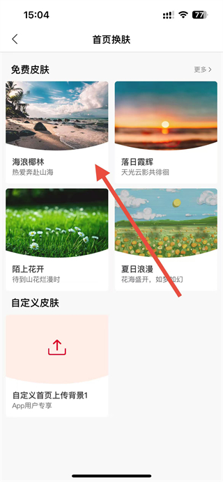 3、在首页换肤页面,可选择免费皮肤如海浪椰林等。
