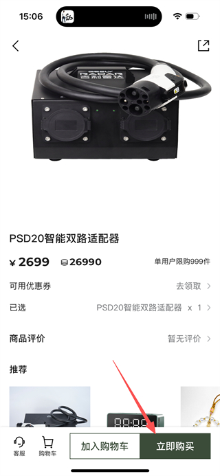3、在商品详情页,点击立即购买按钮,进入订单结算页面。