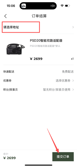 4、在订单结算页,选择收货地址后,点击提交订单完成购买流程。