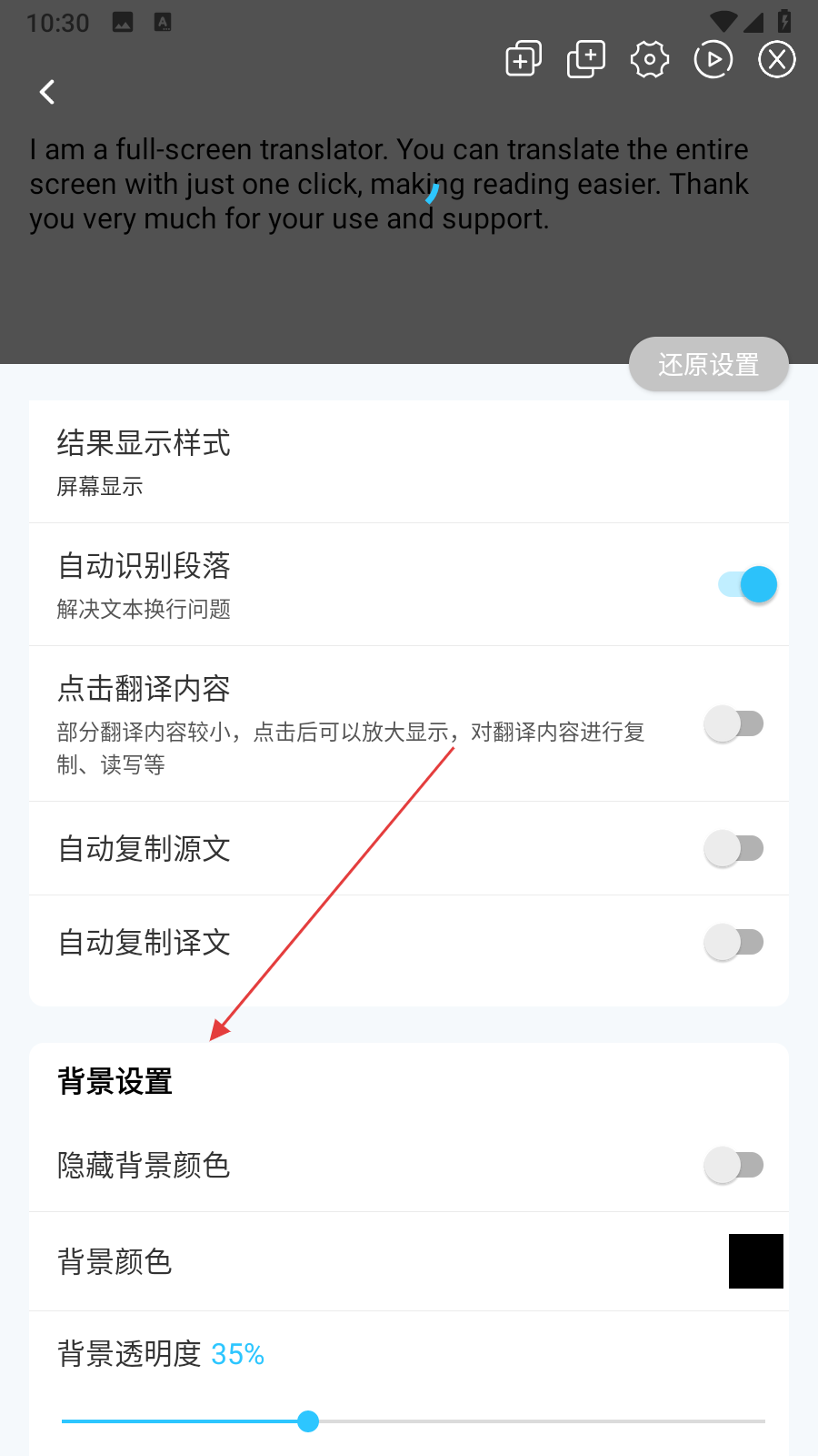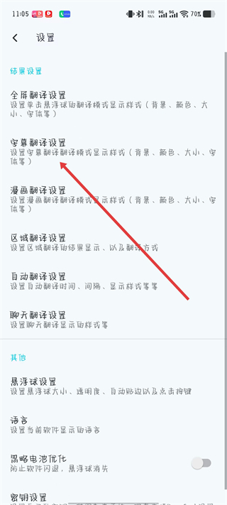 3、在设置界面里,找到全屏翻译设置,点击进入。