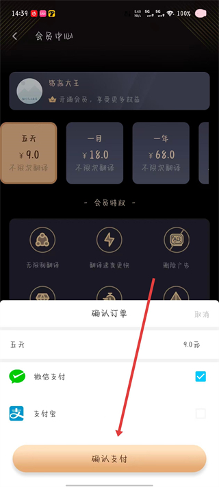 4、在确认订单窗口,选择支付方式,点击确认支付。