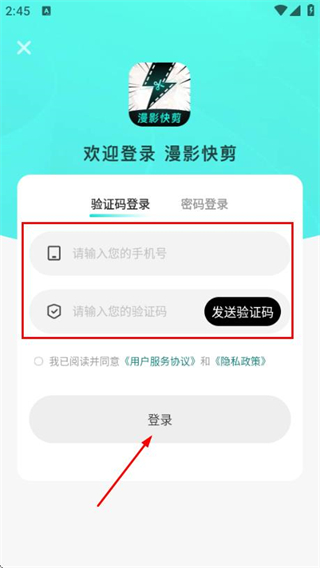 3、在登录页面填写手机号和验证码,勾选协议后,点击登录完成账号登录操作。