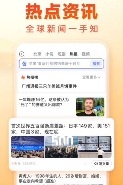 百度畅听版最新版是专为日常信息浏览设计的手机浏览器,资源覆盖全面,想找的内容基本都能搜索到,它尤其适配中老年用户,支持字体加大加粗、视频资讯清晰浏览,还能开启语音朗读模式,无需费力阅读,同时提供免费精彩有声资源,搭配强大搜索功能,用户可随时查资源,另有活动可参与赚钱,多功能设计满足不同使用需求。