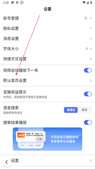 3、找到默认首页设置选项并点击,进入默认首页设置页面。