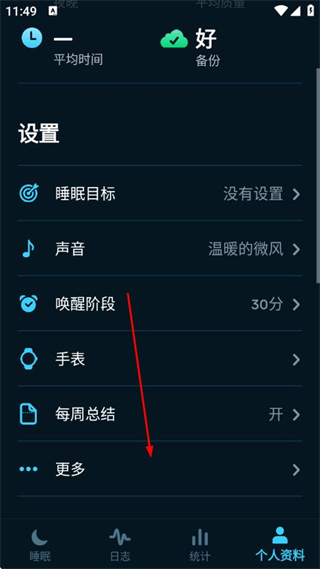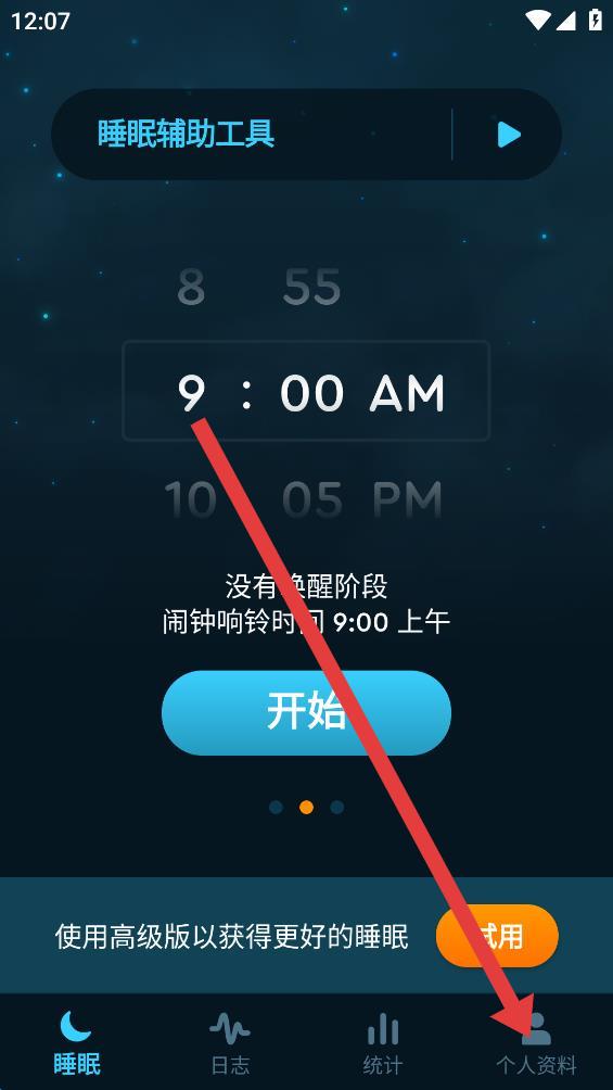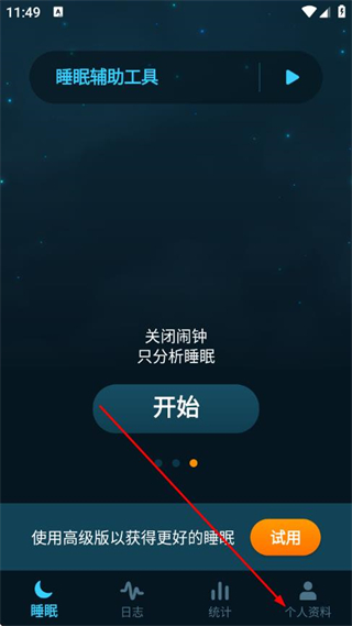 1、打开Sleep Cycle APP,点击导航栏个人资料。