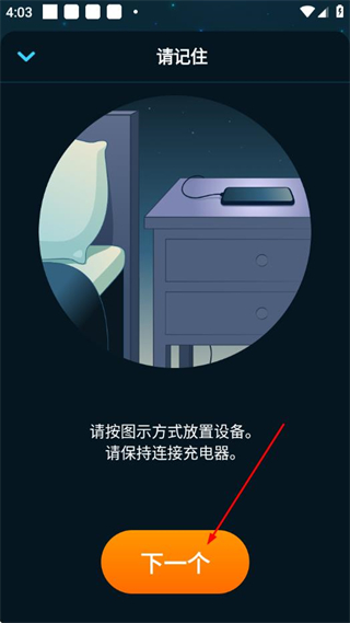 1、打开Sleep Cycle应用,在睡眠页面点击开始,进入设备放置指引页面。