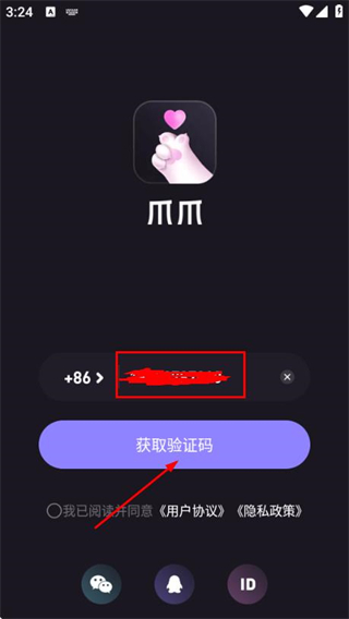 1、在使用协议隐私政策弹窗中点击同意按钮,进入注册页面。