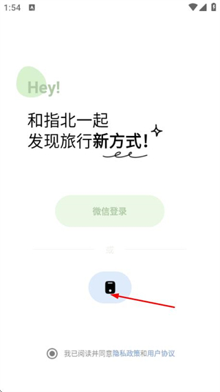 1、进入指北旅行点击手机图标,进入手机登录页面。