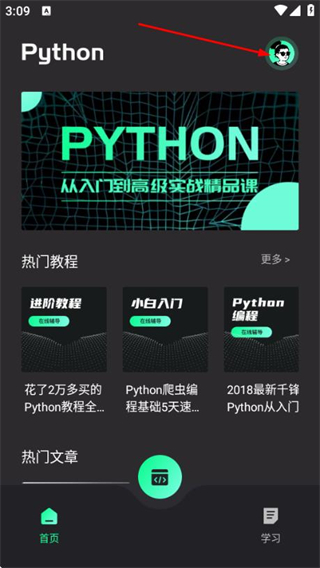 python编程入门是专注Python语言学习的移动端教育工具,以零门槛入门、系统化进阶为核心理念,整合1000多种教程、免费技术文档及经典视频课程,覆盖前端开发、后端开发、数据分析、人工智能等多领域,适配编程初学者与技能提升者,助力快速掌握简洁高效、应用广泛的Python编程技能。