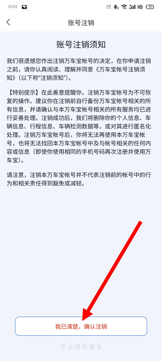 5、在账号注销须知页面,点击我已清楚,确认注销,完成注销。