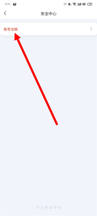 4、在安全中心页面,点击账号注销,进入账号注销界面。