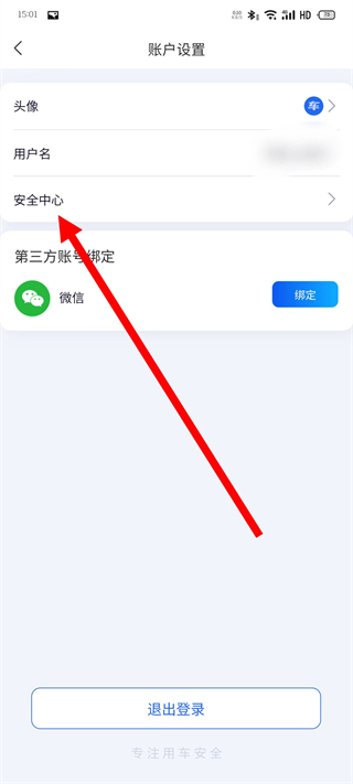 3、在设置界面,点击账户设置,点击选择安全中心。