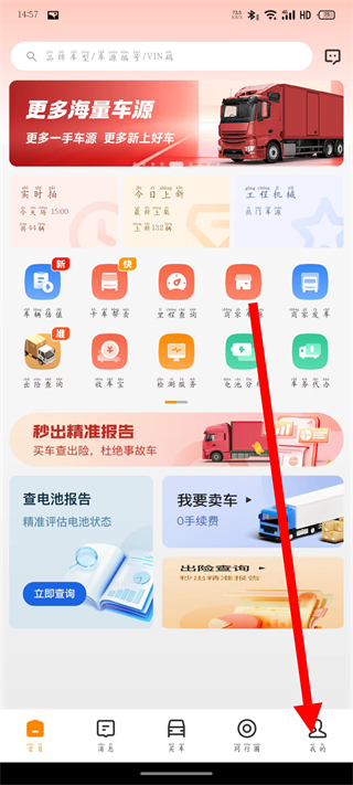 1、打开狮桥二手车平台,点击底部的我的,进入我的页面。