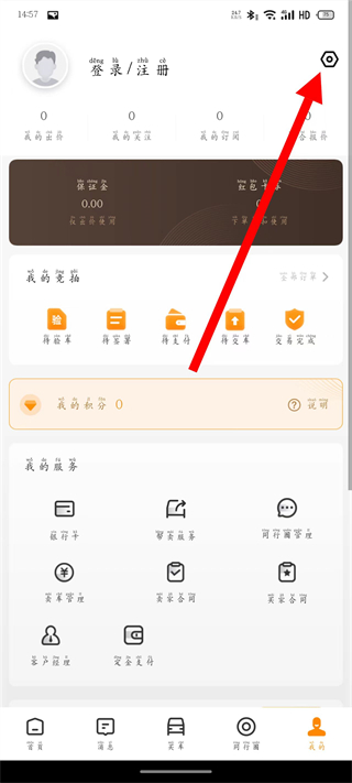 2、在我的页面,点击右上角的设置图标,进入设置界面。