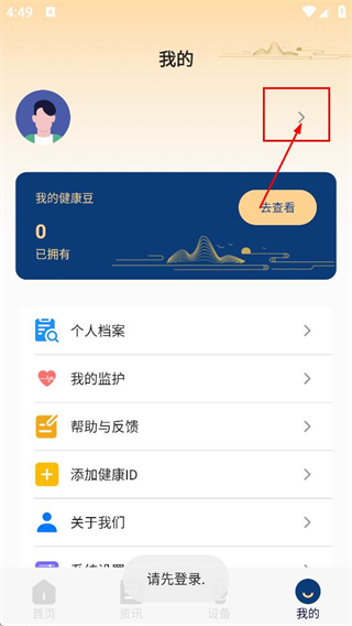 2、在个人页面,点击右上角的登录入口区域,进入登录页面。