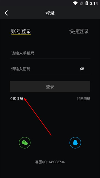 3、在登录页面点击立即注册选项,进入注册表单页面。