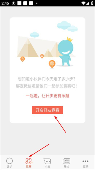 2、点击竞赛页面的开启好友竞赛,邀请好友参与步数竞赛,比拼每日步数。