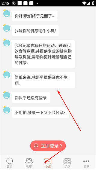 3、在小皮页面,记录运动、睡眠、饮食等数据,并提供健康指导与提醒。